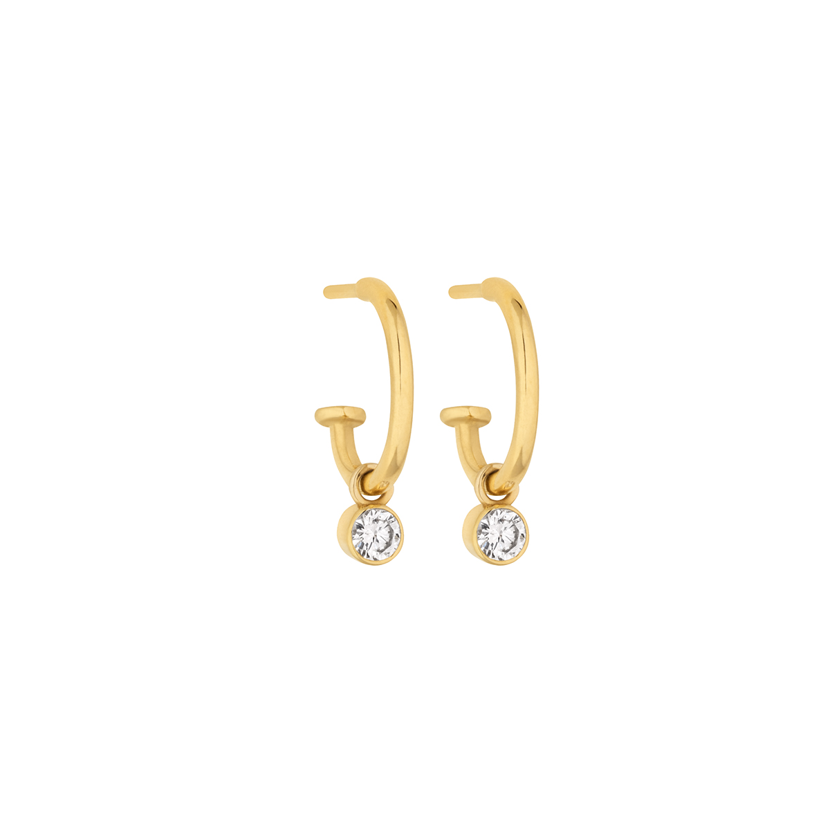 Bezel Brilliant Diamond Drops 0,10ct on Plain hoops S Yellow Gold 12mm